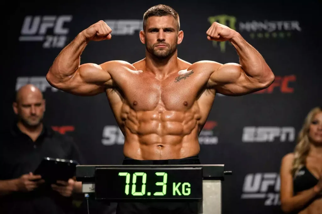 Die Mechanik ist brutal simpel. In den letzten Tagen vor dem Wiegen reduzieren Kämpfer ihre Wasser- und Nahrungsaufnahme drastisch. Saunagänge, heiße Bäder, Plastikanzüge – alles, um Wasser aus dem Körper zu treiben. Am Wiegetag stehen sie dehydriert, ausgemergelt und geschwächt auf der Waage. Dann haben sie 24 bis 36 Stunden, um zu rehydrieren und sich zu erholen, bevor der Kampf beginnt. Das funktioniert oft – aber nicht immer.