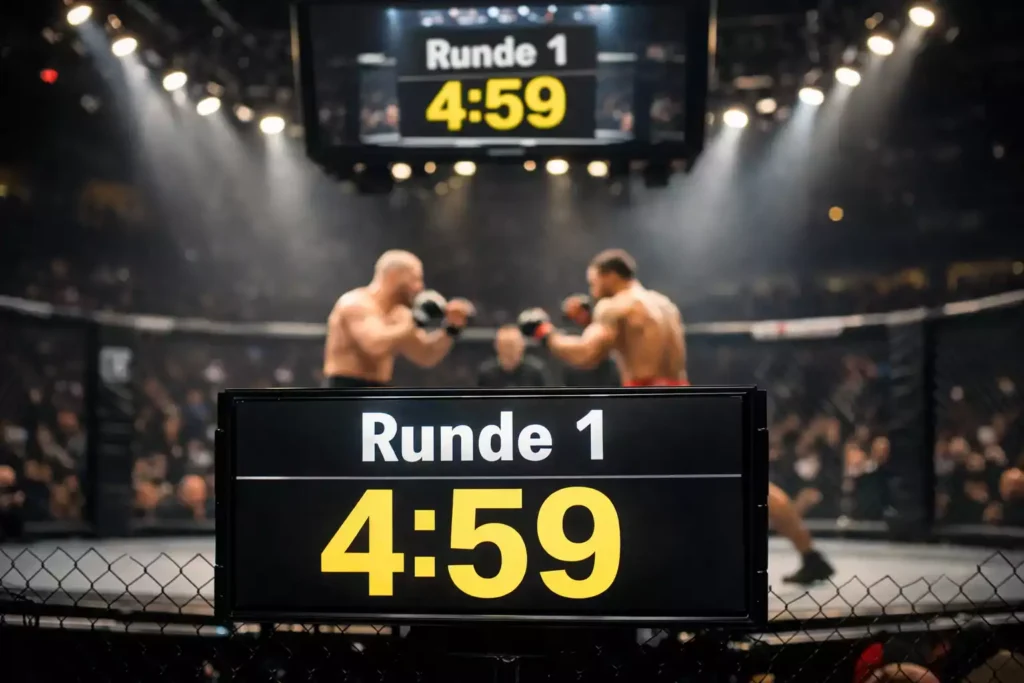 Die Unterscheidung zwischen Drei-Runden- und Fünf-Runden-Kämpfen ist fundamental. Hauptkämpfe und Titelkämpfe gehen über fünf Runden à fünf Minuten – insgesamt 25 Minuten mögliche Kampfzeit. Alle anderen Kämpfe sind auf drei Runden à fünf Minuten begrenzt – 15 Minuten maximal. Diese Differenz beeinflusst nicht nur die absoluten Zahlen, sondern auch die Kampftaktik: In einem Fünf-Runden-Kampf können Kämpfer geduldiger agieren, während in drei Runden mehr Druck besteht, früh zu finishen.