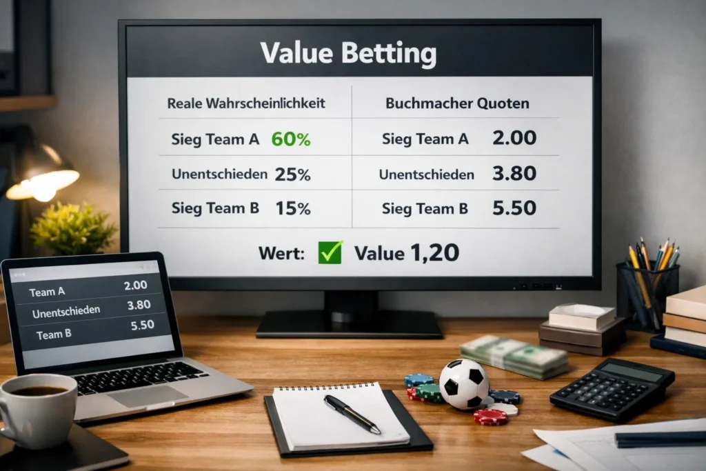 Der Unterschied zwischen Wettern, die langfristig gewinnen, und solchen, die verlieren, liegt nicht darin, wer häufiger richtig liegt. Er liegt darin, wer konsequent Value findet. Ein Wetter mit 45% Trefferquote kann profitabel sein, wenn er bei durchschnittlich Quote 2.50 wettet. Ein Wetter mit 55% Trefferquote kann verlieren, wenn er bei durchschnittlich Quote 1.60 wettet.